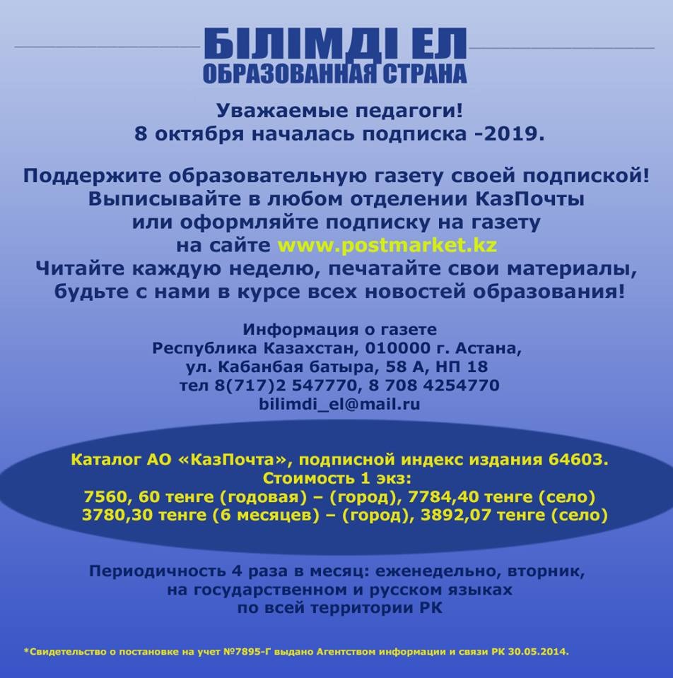 Редакция готова стать вашим надежным партнером! Тематика – обновление содержания образования, развитие государственного языка, формирование культурных и духовных ценностей, воспитание патриотизма, формирование здорового образа жизни и другие направления. Газета выходит при информационной поддержке МОН РК.
